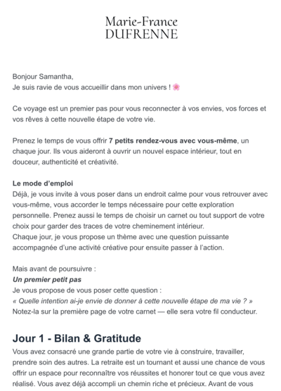 Marie-France a le don de mettre des mots justes sur ce que je ne sais pas expliquer.